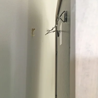 Pro tip: If your painting is in a hallway and is easily knocked off level, use some museum putty or rubber stoppers (both found at hardware stores) to anchor the corners to the wall.