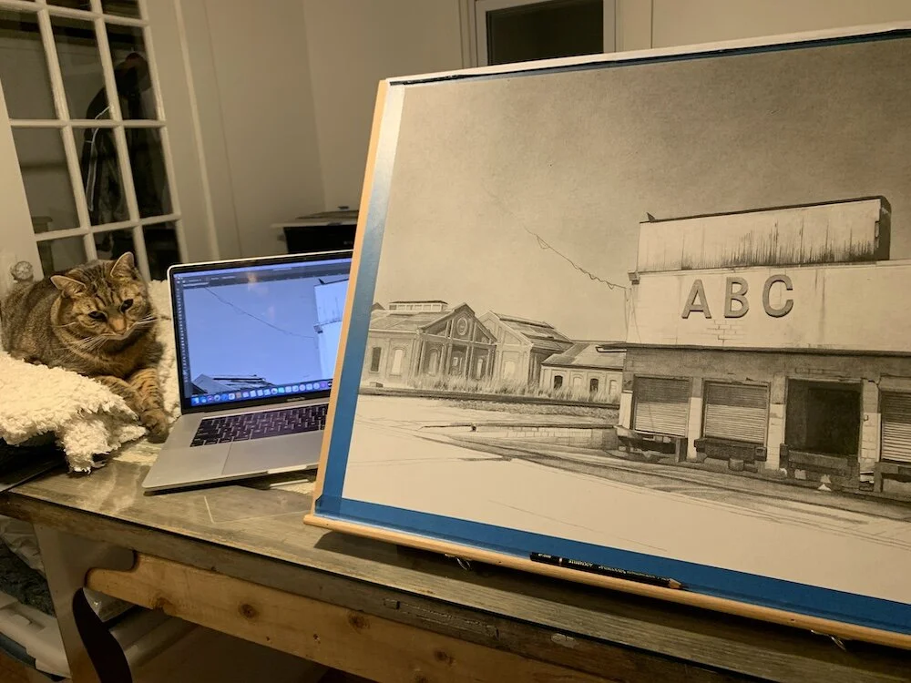 Second drawing in progress, not yet named. This one is in southeast Baltimore. Miss Ruthie supervising.
