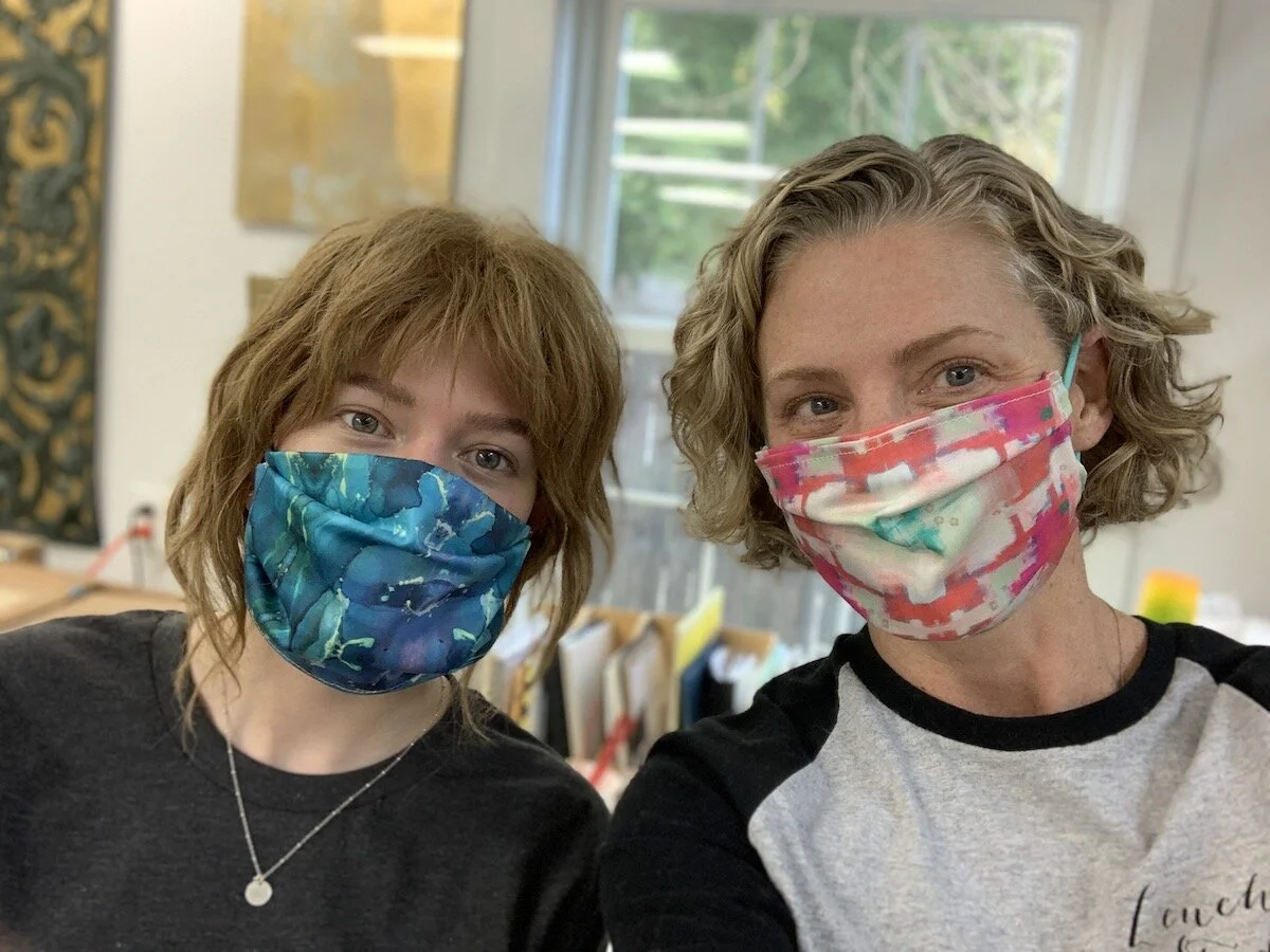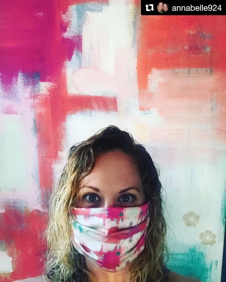Masks made from my painting, modeled by the lovely owner of said painting, Annie Pearce